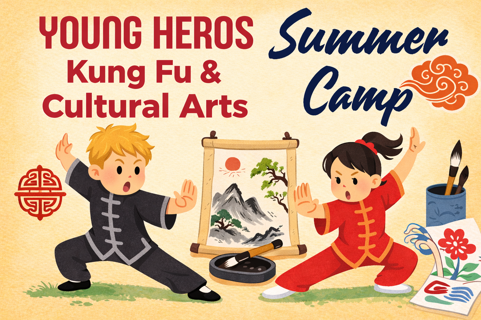 Young Heroes is a dynamic summer camp designed to build strength, focus, creativity, and confidence through structured Kung Fu training and immersive cultural arts.